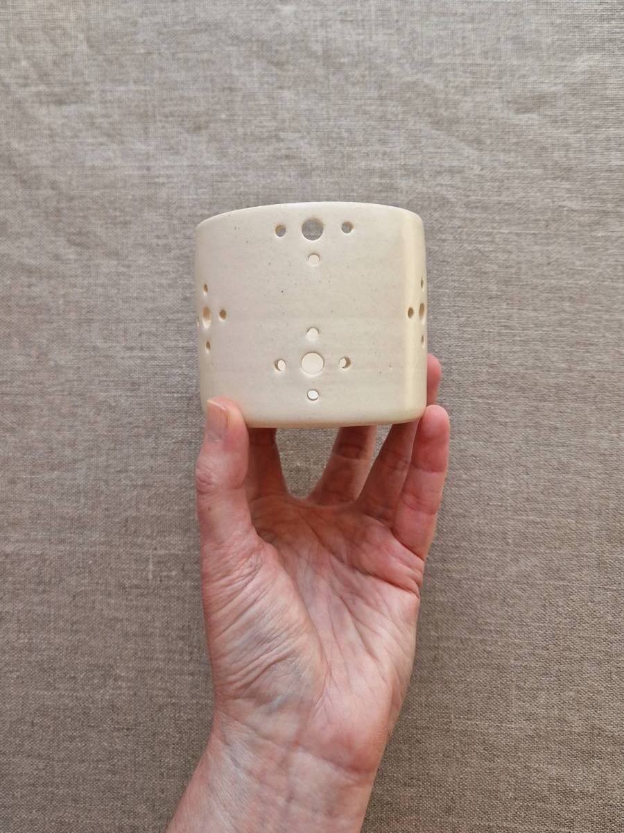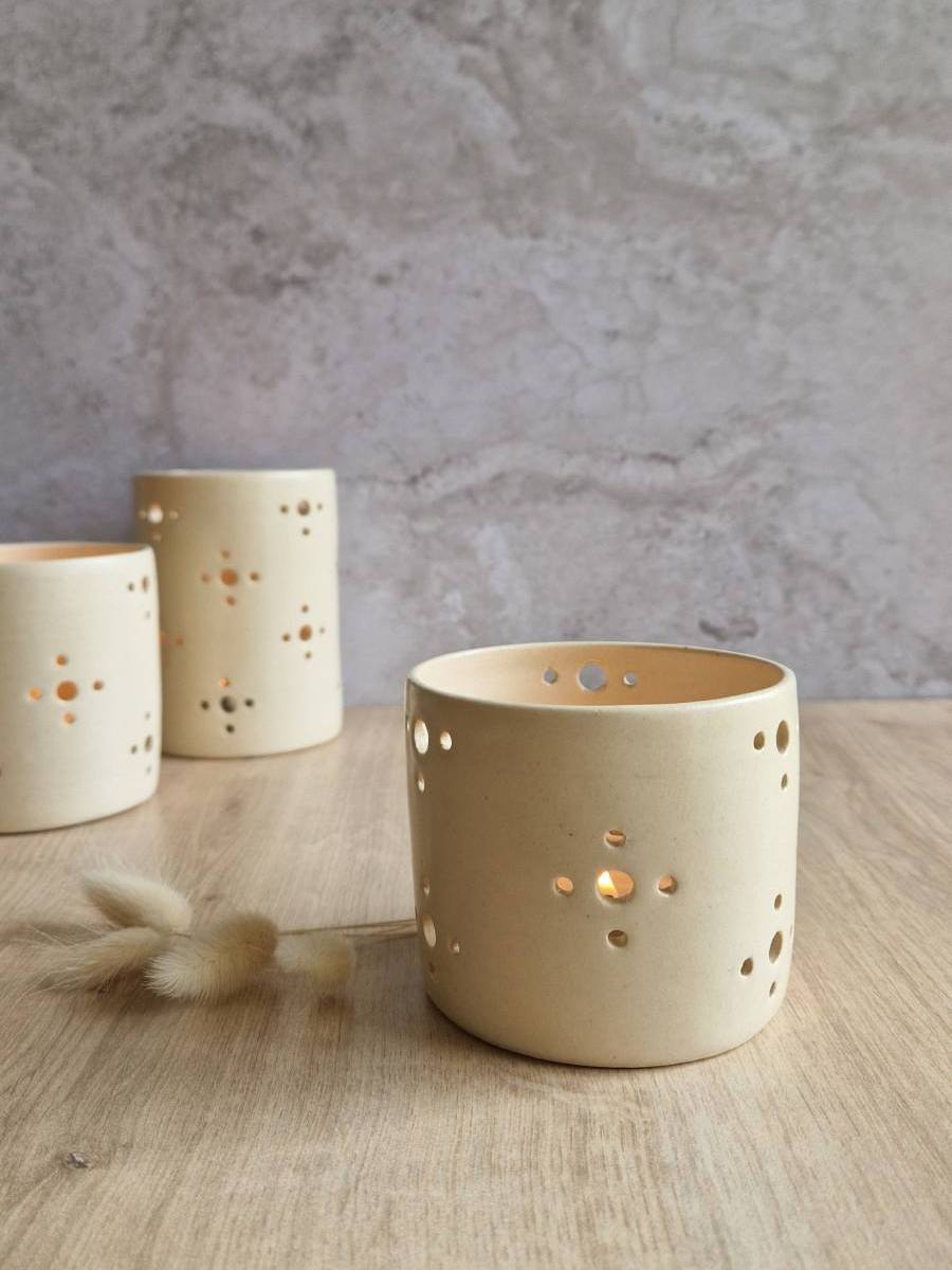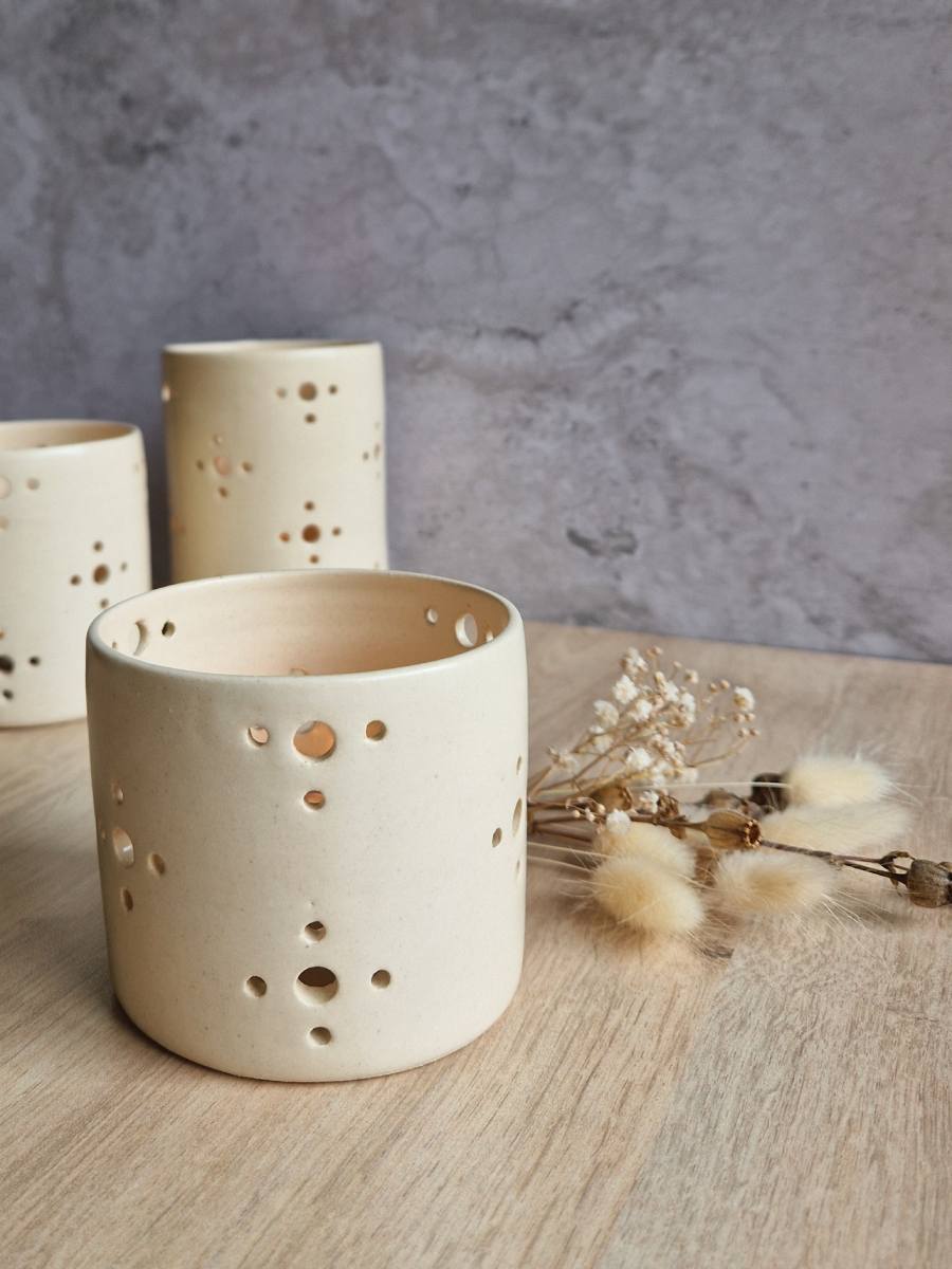 Photophore en grès émaillé, finition satinée.