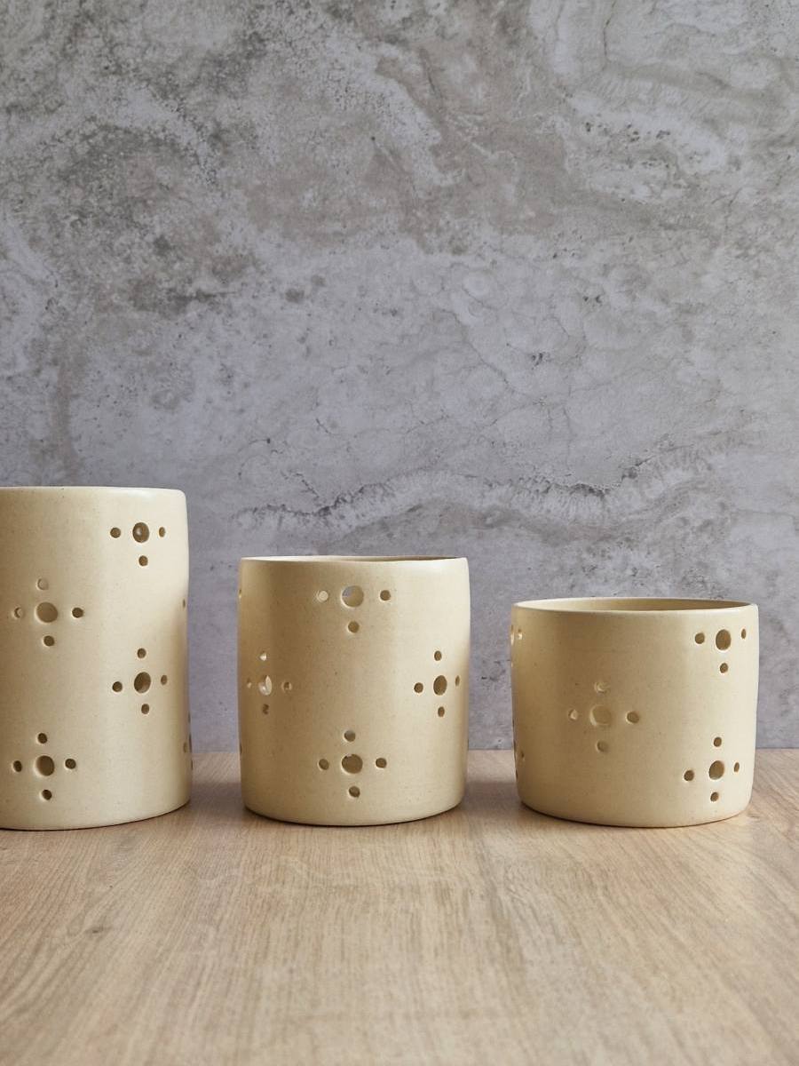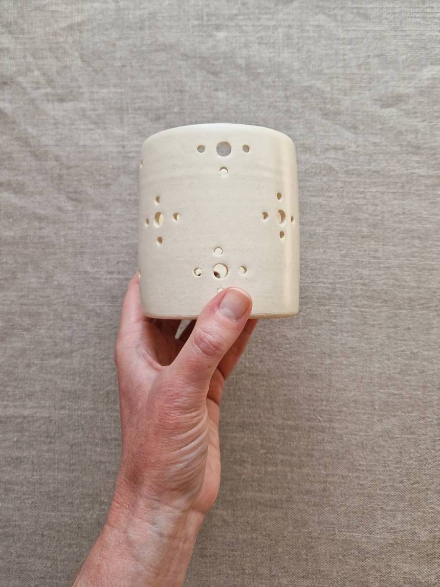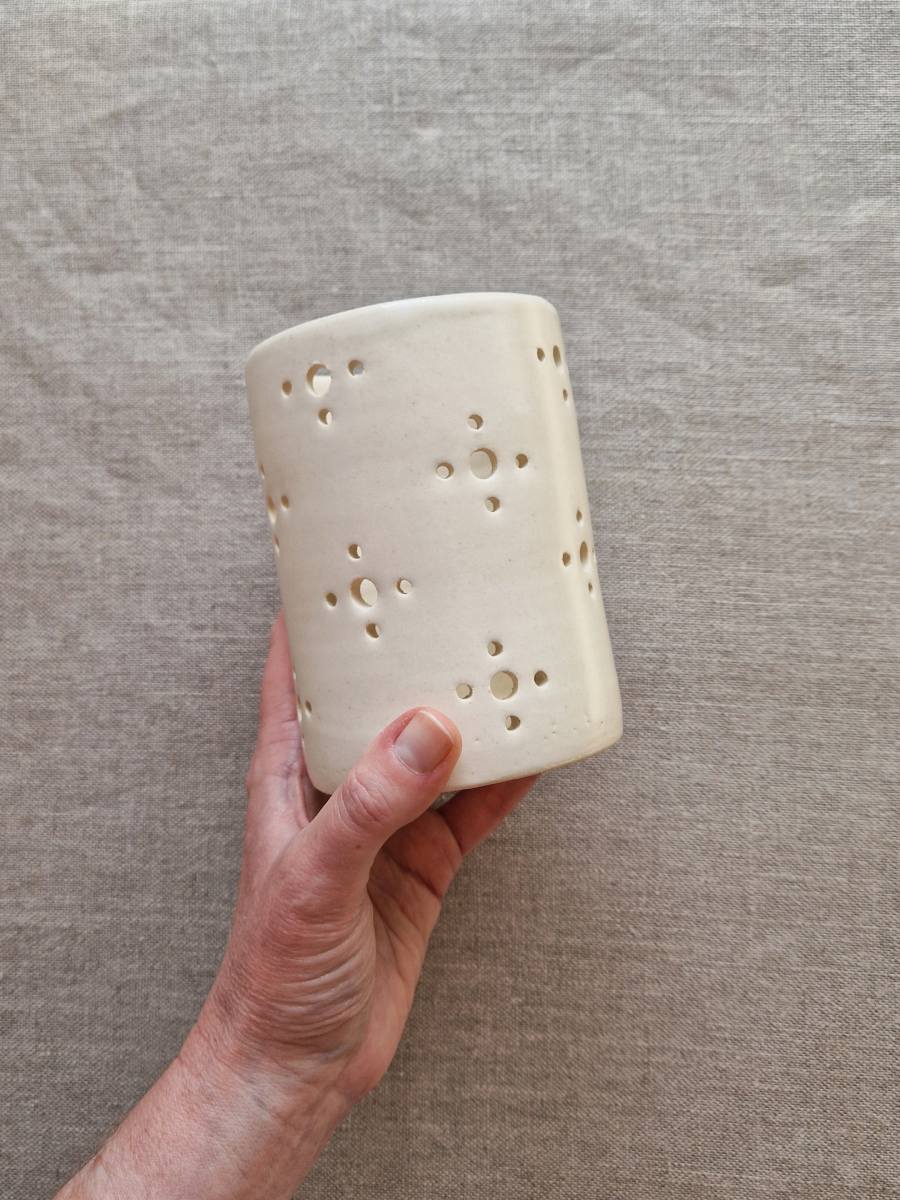 Photophore en grès émaillé, finition satinée.